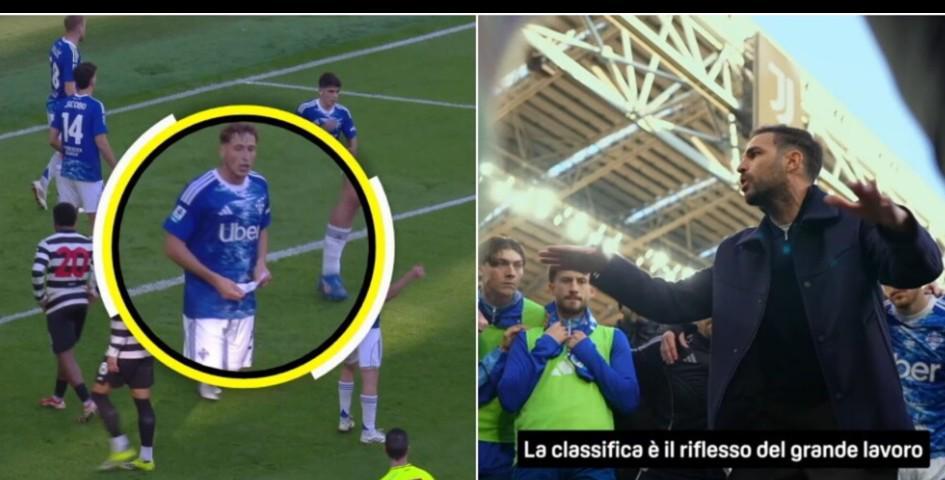 在安联球场率领科莫两球领先尤文图斯时,法布雷加斯依然不愿放过任何细节,以确保中场球员完全执行他的意图。根据Dazn在赛后播出的画面,趁着尤文获得角球的机会,这位西班牙教练从助教的笔记本上撕下一张纸,开始给球员们写指令。