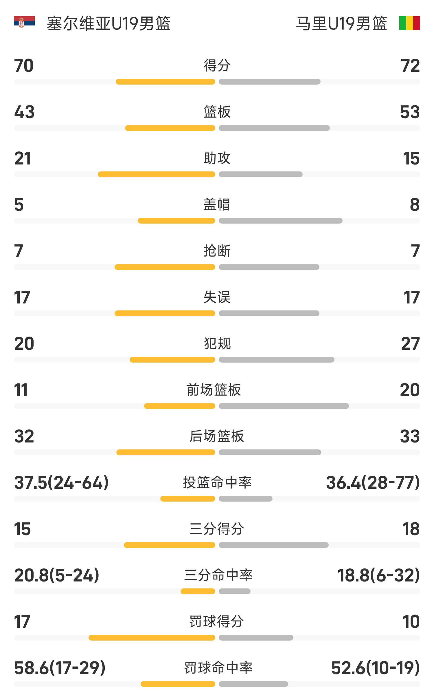 U19世界杯战报:巴加约科21分,马里U19男篮72-70险胜塞尔维亚爆出大冷门